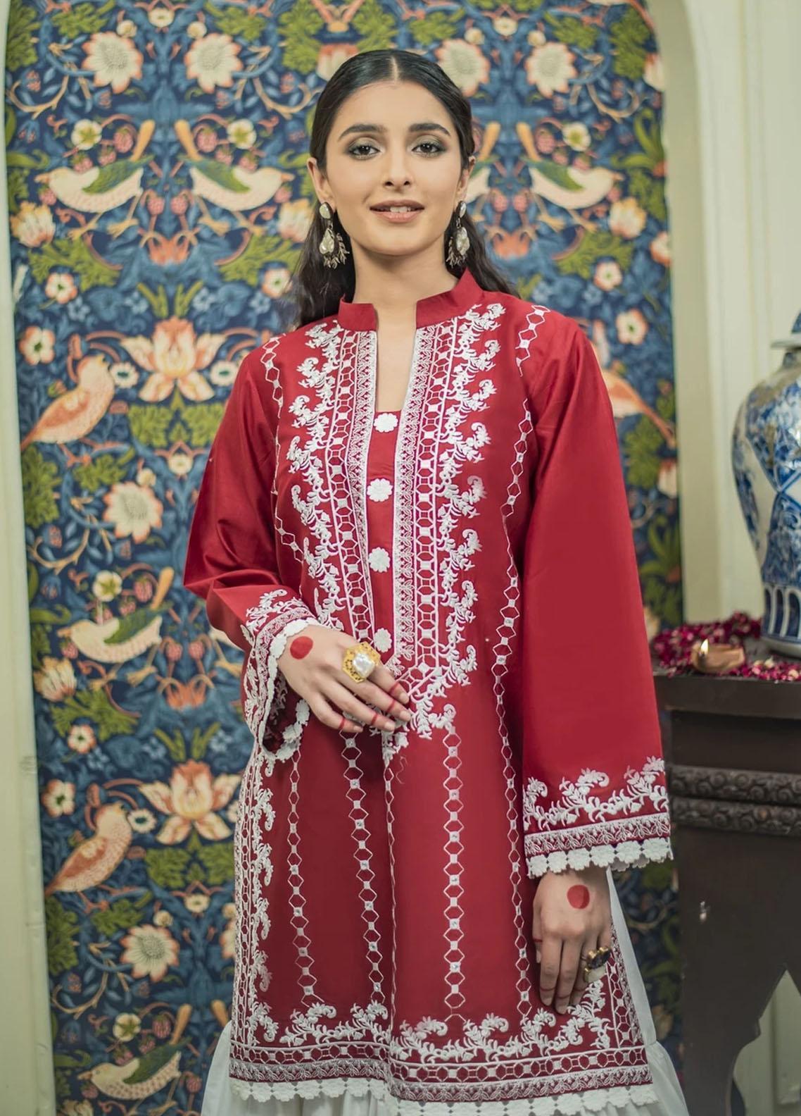 Nuriyaa Luxury Pret Embroidered Lawn 2 Piece NR21RY Surkh Raag