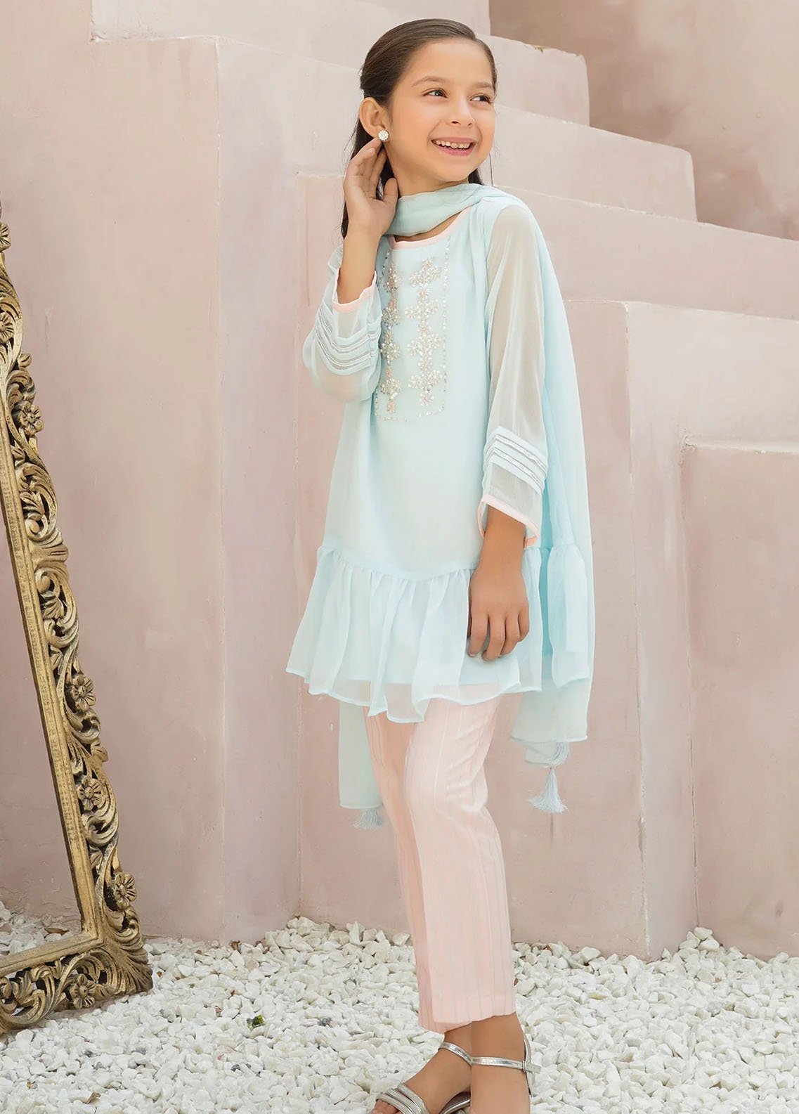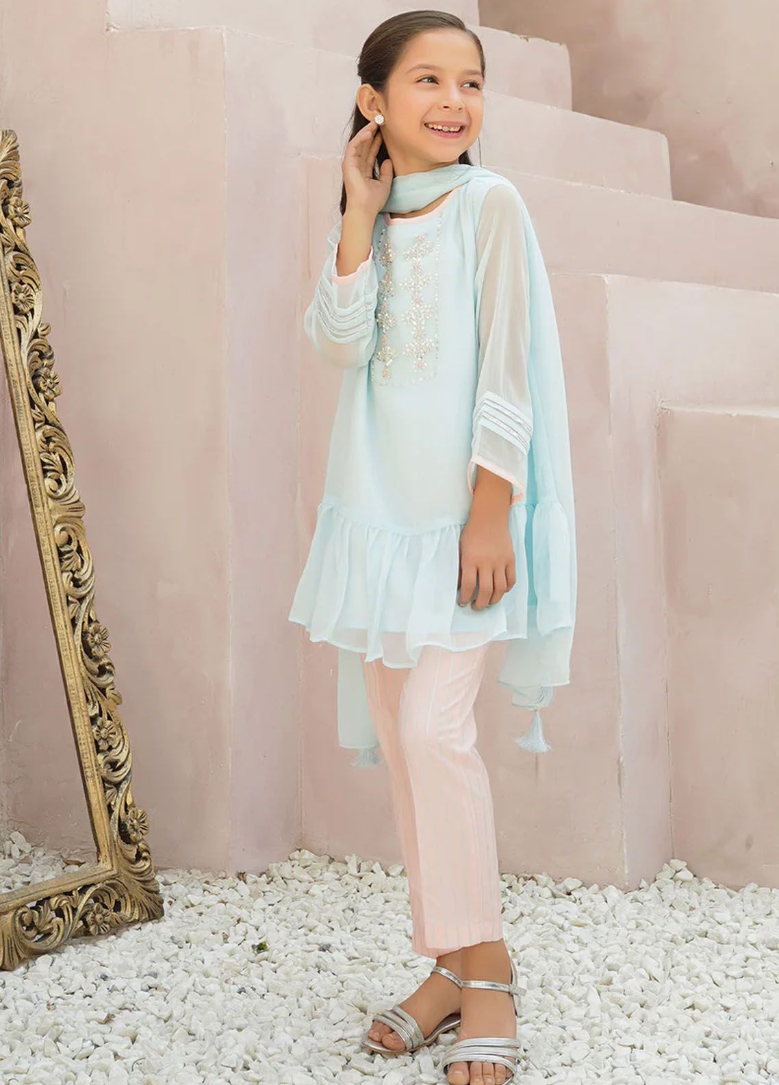 Chiffon Hand Adda Work 3 Pc Suit