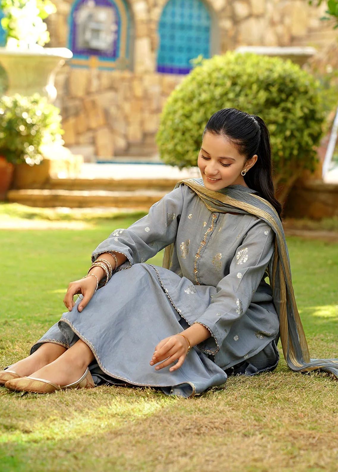 Ochre Pret Embroidered Cotton 3 Piece Suit OFW-EX-10