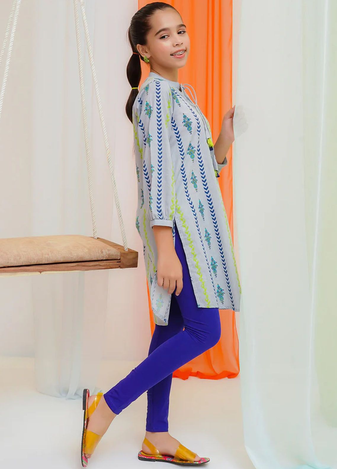 Chambray Cotton Printed Kurta