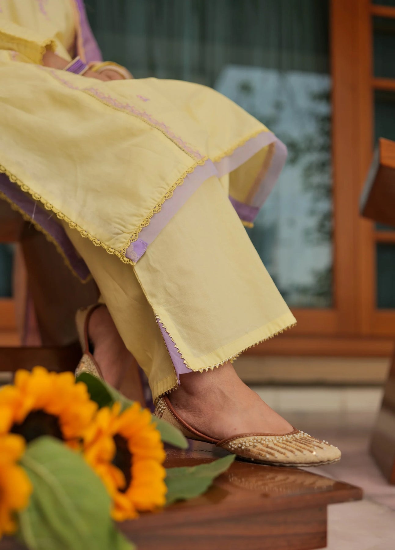 Color: Lemon Yellow Fabric of shirt: Lawn Fabric of dupatta: Chiffon Fabric of trouser: Lawn Model Height: The model is 5'5 and wears a small size.