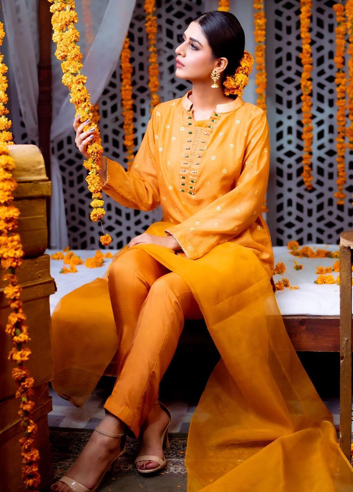 PSK Couture Pret Embroidered Cotton Net 4 Piece Suit PUMPKIN SPICE