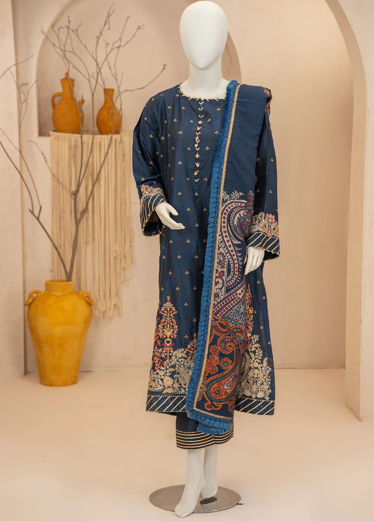 This exquisite ensemble features a fully embroidered shirt crafted from self-viscose silk, adorned with intricate gota detailing along the neckline and hem. It is beautifully complemented by a matching trouser enhanced with delicate gota accents. To complete the look, a luxurious pashmina jacquard shawl adds a touch of timeless elegance, making this outfit a perfect choice for festive and special occasions.