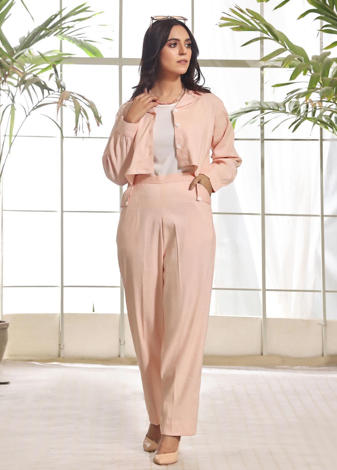 Robes Pret Western  2 Piece Suit Cropped Co-Ord Set Pastel Pink