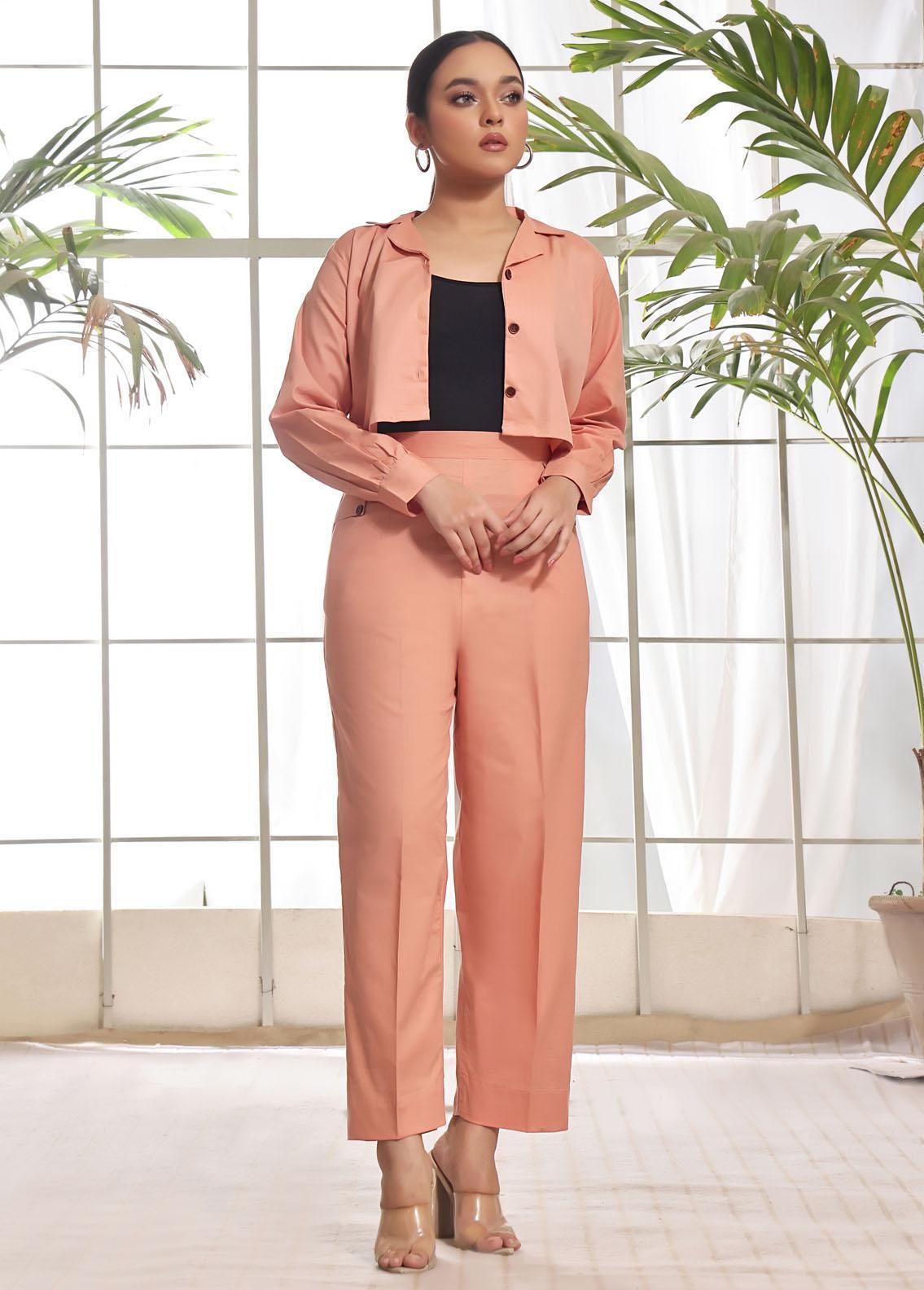Robes Pret Western  2 Piece Suit Cropped Co-Ord Set Peachy Pink