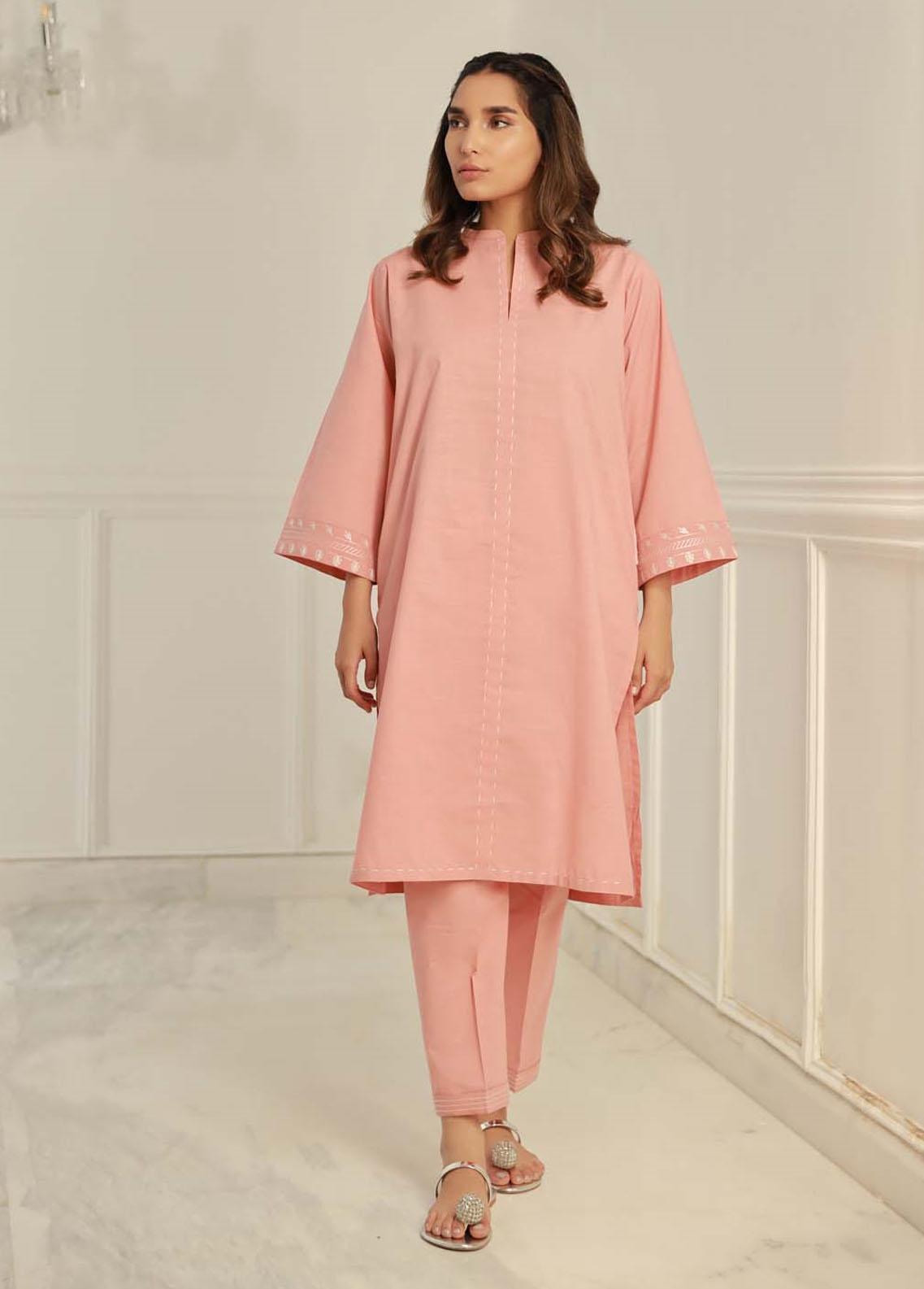 Pink Luxe is a captivating light pink colour co ord outfit Featuring stylish embroidery details along sleeves edges and embellished running stitch Paired with cuffed trousers A smart and stunning causal wardrobe choice to add to your daily wear option