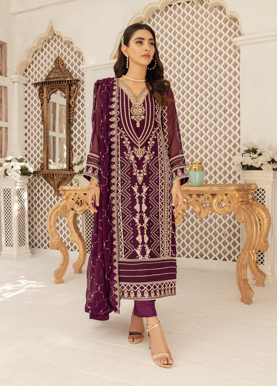 Shamooz Luxury Pret  Chiffon 3 Piece Suit Plum SEM-0429