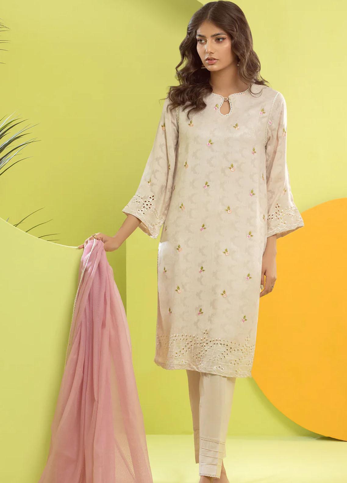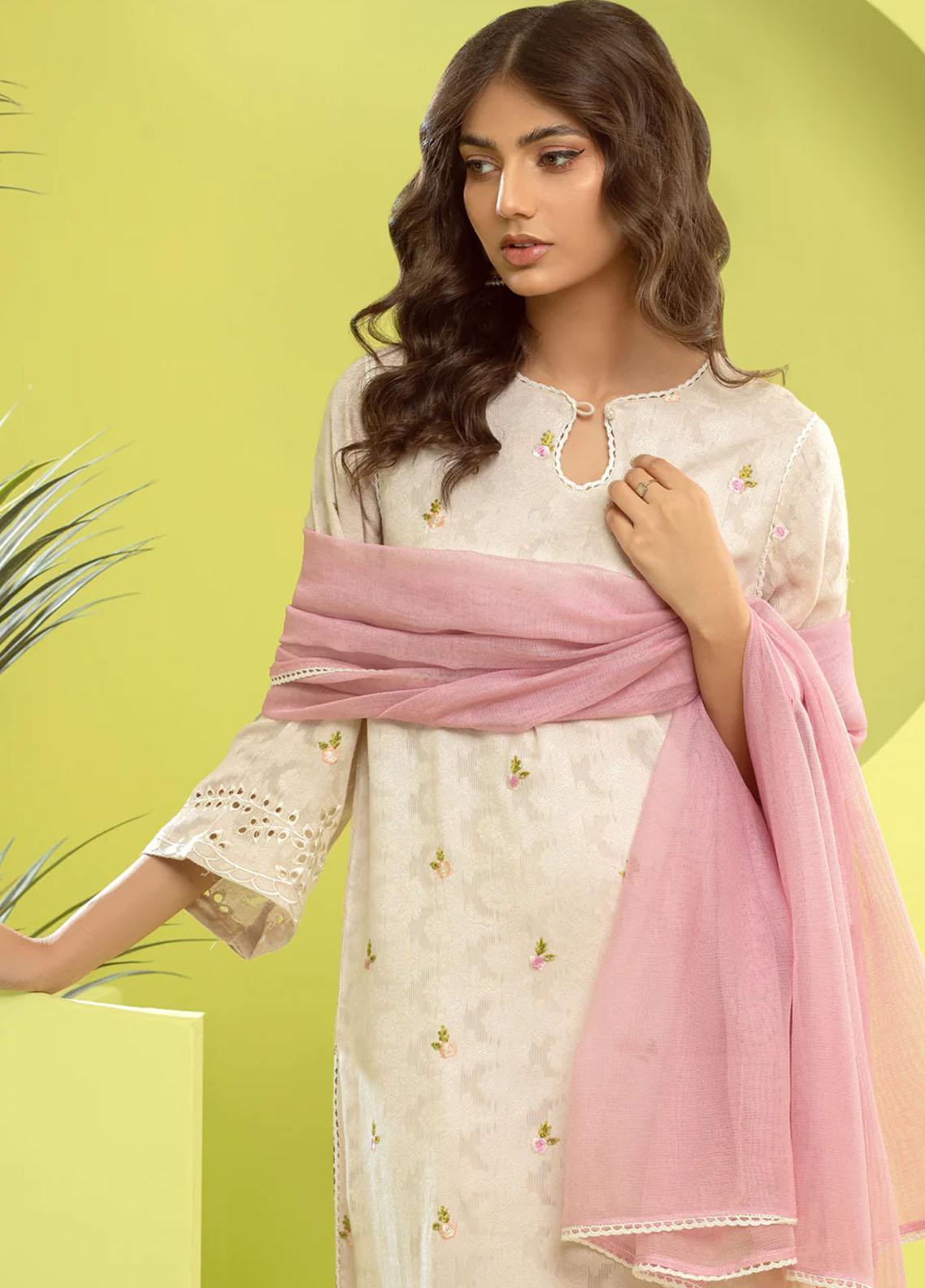3 piece StitchedEmbroidered Cotton Jacquard Shirt Cotton Trousers Embroidered net dupatta.