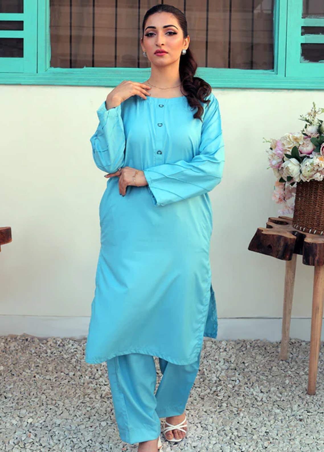 Plain Pret Blended Cotton 2 Piece Suit