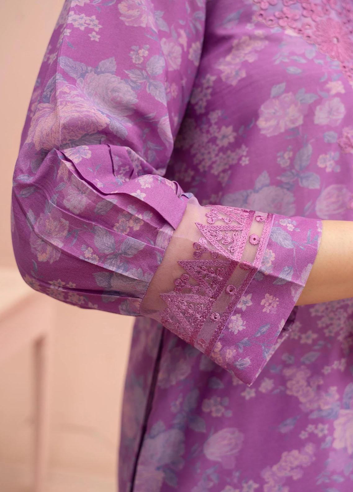 Lavender Bloomed Beauty With Embroidered Organza Inserts Painting Layers Of Perfect Proportions.