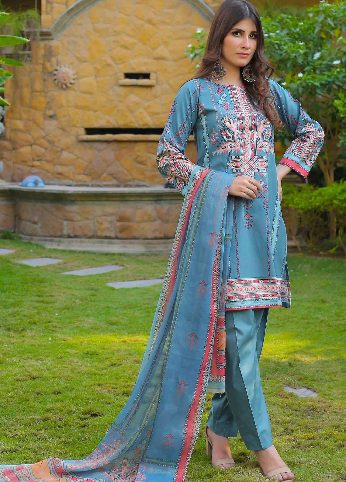 Waniya Casual Pret  Cotton 3 Piece CERULEAN PK-221A