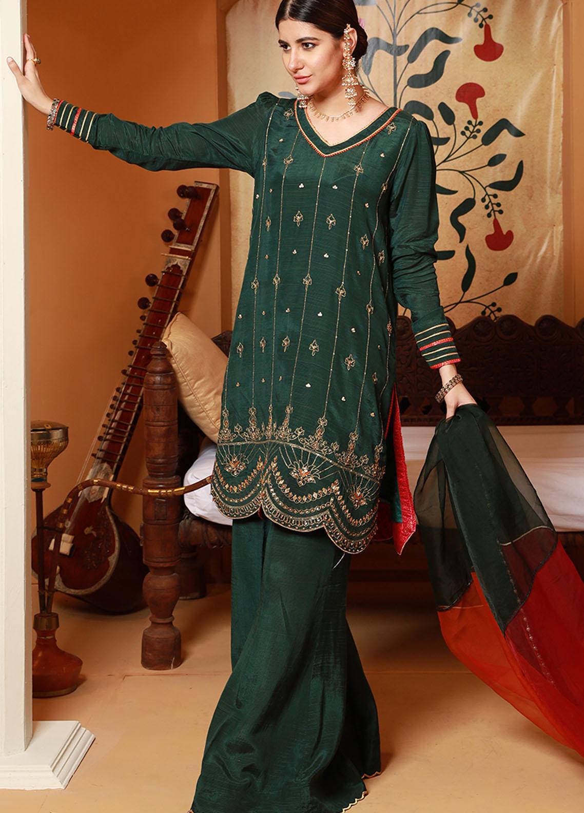 Zaaviay Luxury Pret Embroidered Raw Silk 3 Piece Dress RANO