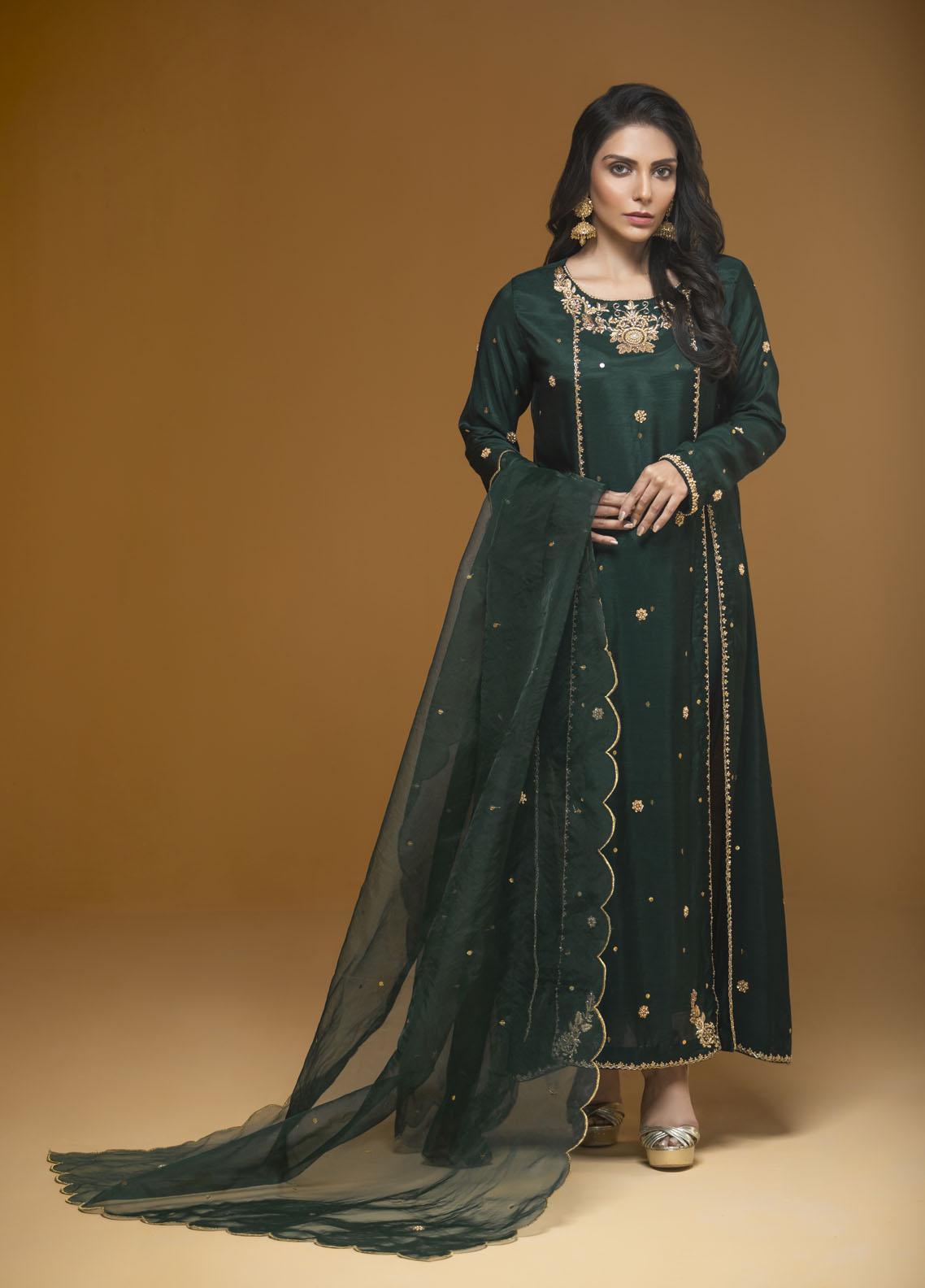 Zebaqi Luxury Pret Cotton Silk 3 Piece Suit AKHDAR