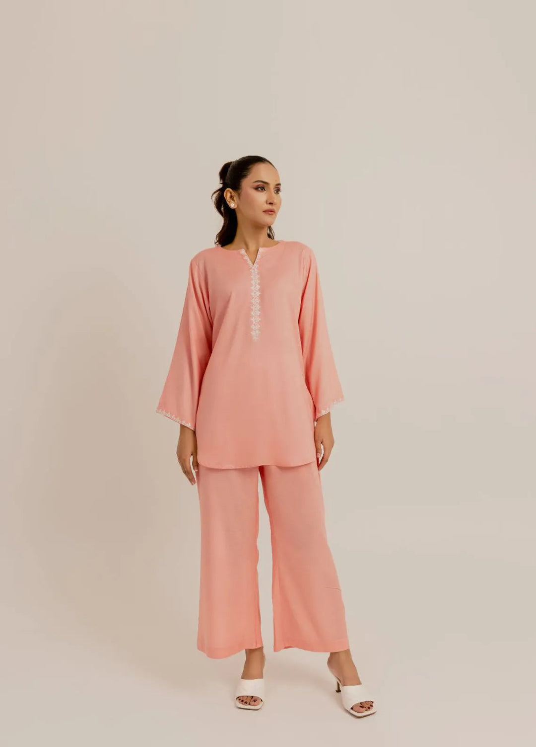Slay Wear Pret Embroidered Linen 2 Piece Peach Embroidered Set
