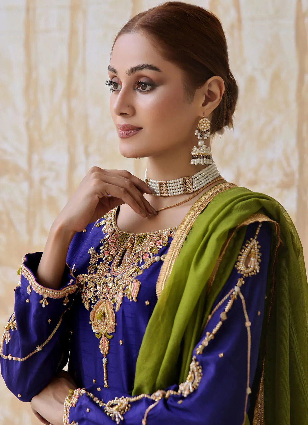 Slay Wear Pret Embroidered Linen 2 Piece Olive Embroidered Set