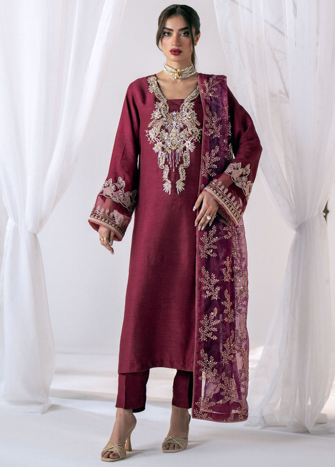 AJR Couture Pret Embroidered Raw Silk 3 Piece Suit SCARLET