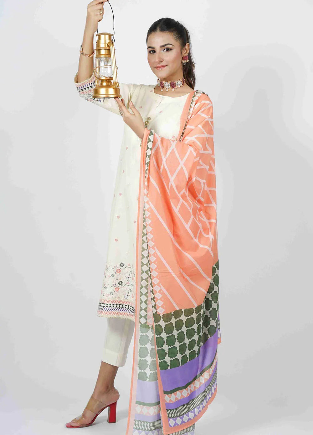 Vibgyor Fashion Pret Embroidered Lawn 3 Piece Suit D4C1-S-V124 SIA CREAM