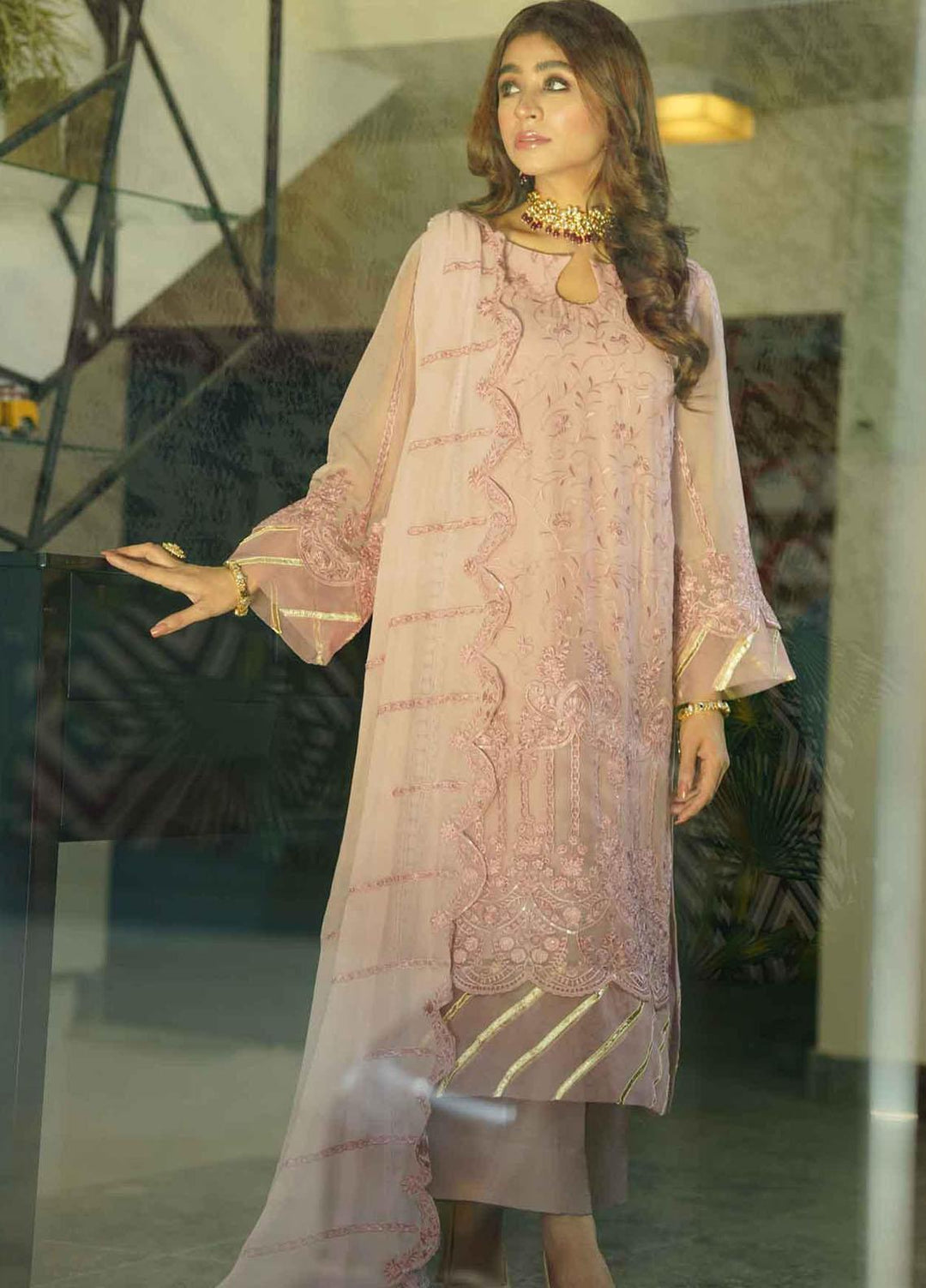 Musferah Saad Pret Embroidered Tissue Silk 3 Piece Suit Mauve Magic