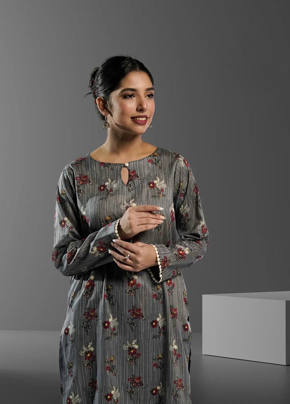 Mom4Little Pret Blended Cotton Grey Kameez Shalwar Set