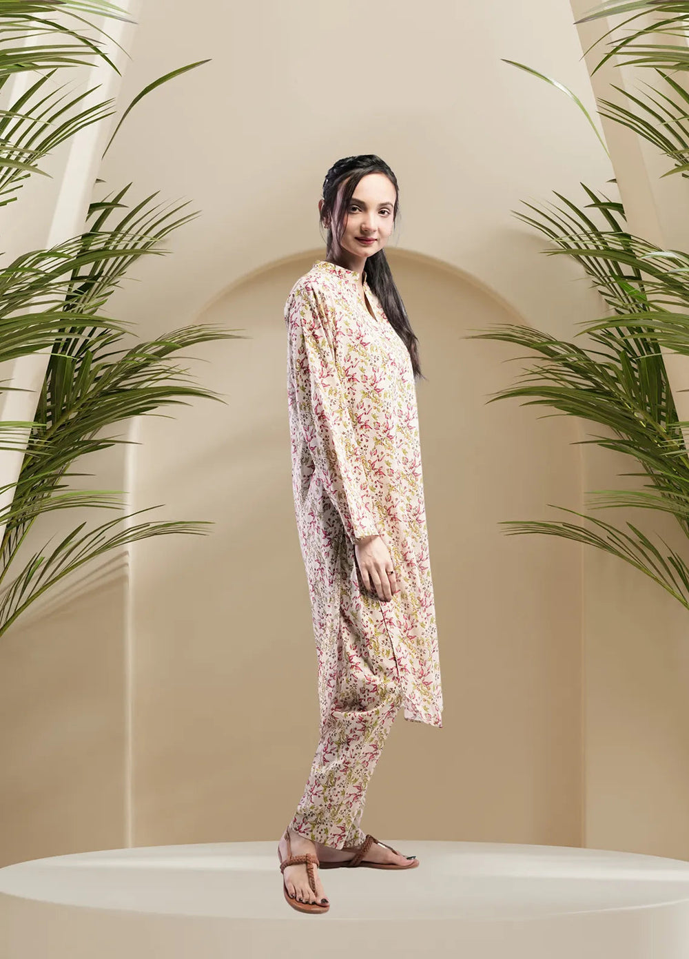 Stitch Vibes Pret Printed Crepe 2 Piece Suit Ivory Co-Ord set