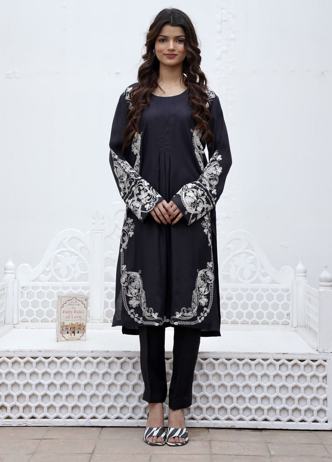 Topnotch Pret Embroidered Silk 3 Piece Suit Onyx