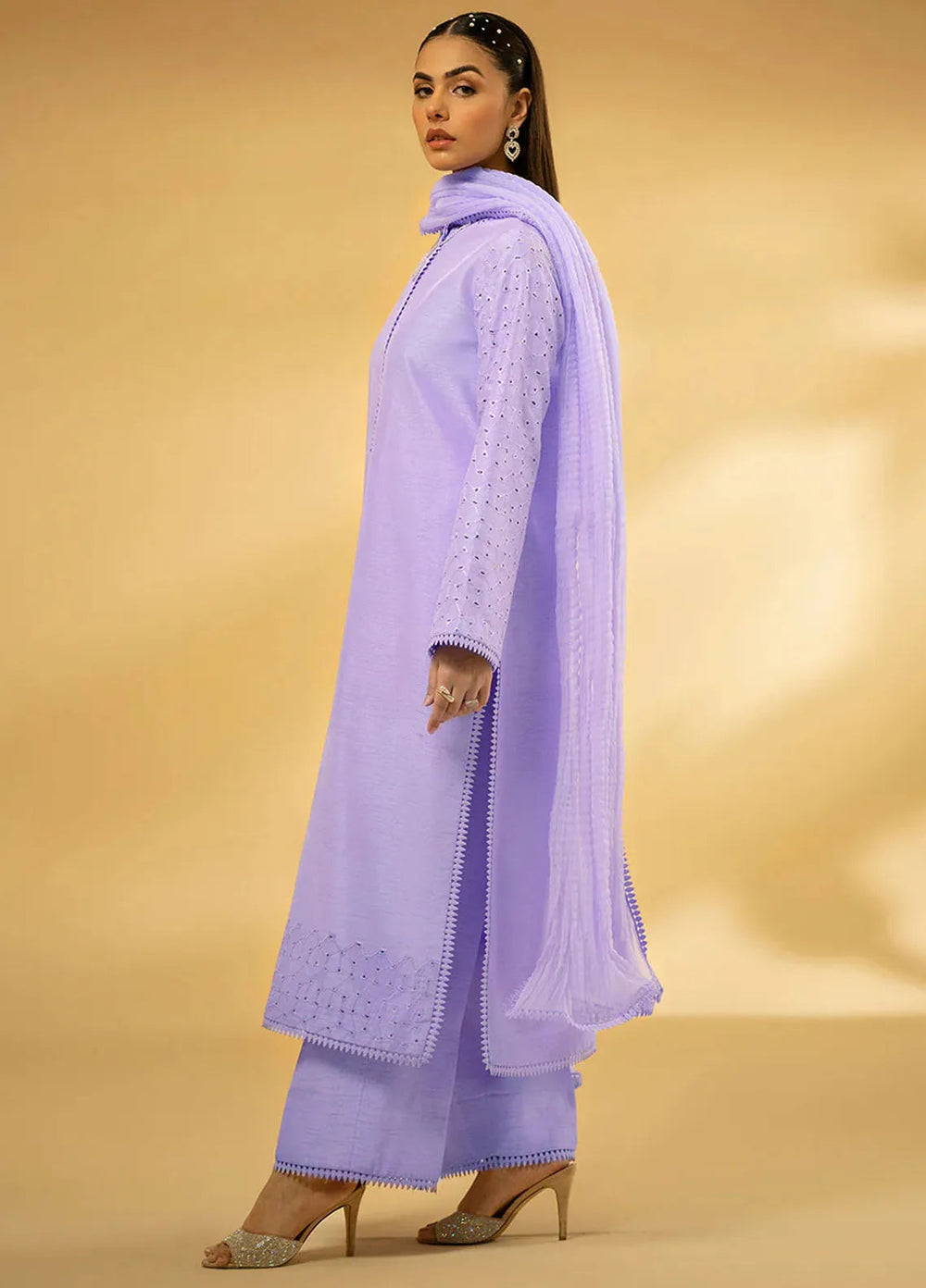 Fozia Khalid Pret Embroidered Raw Silk 3 Piece Suit Lilac Dreamscape