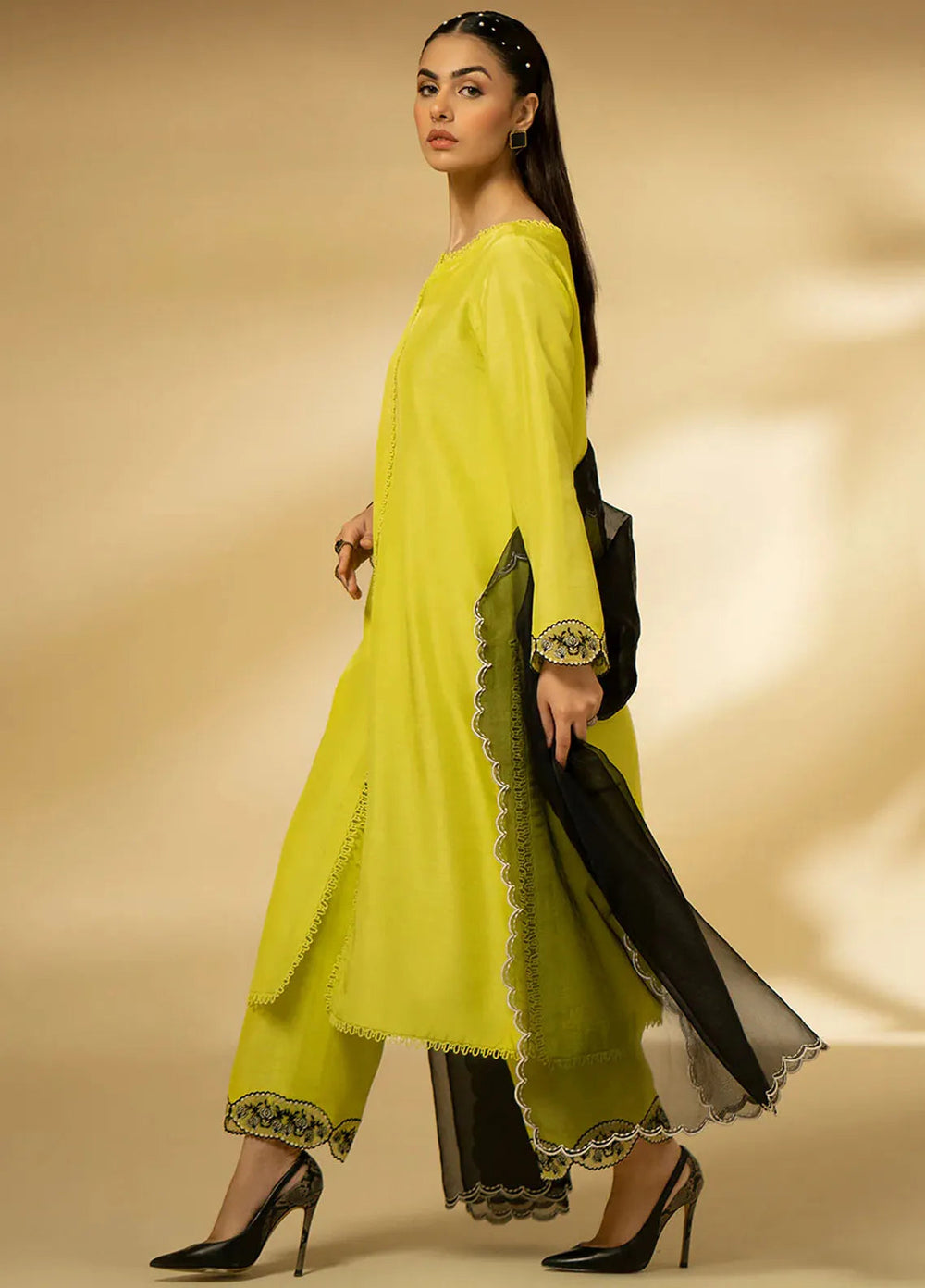 Fozia Khalid Pret Embroidered Raw Silk 3 Piece Suit Lime Zest
