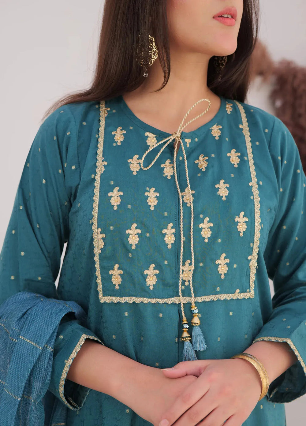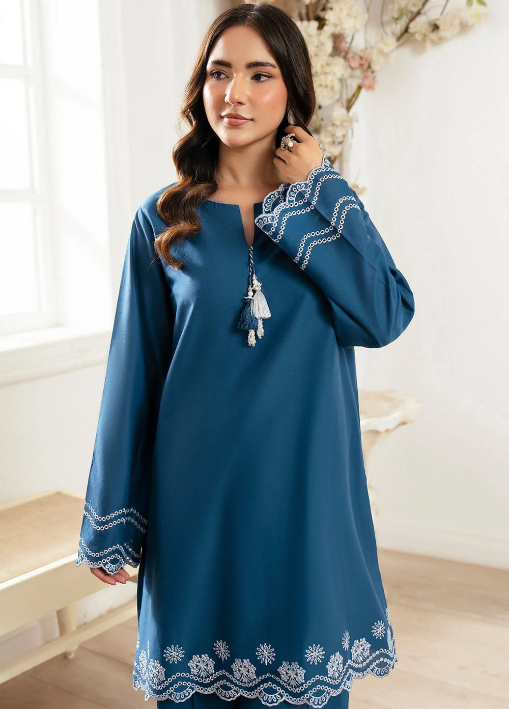 Meerak Pret Printed Khaddar 3 Piece Suit Sapphire