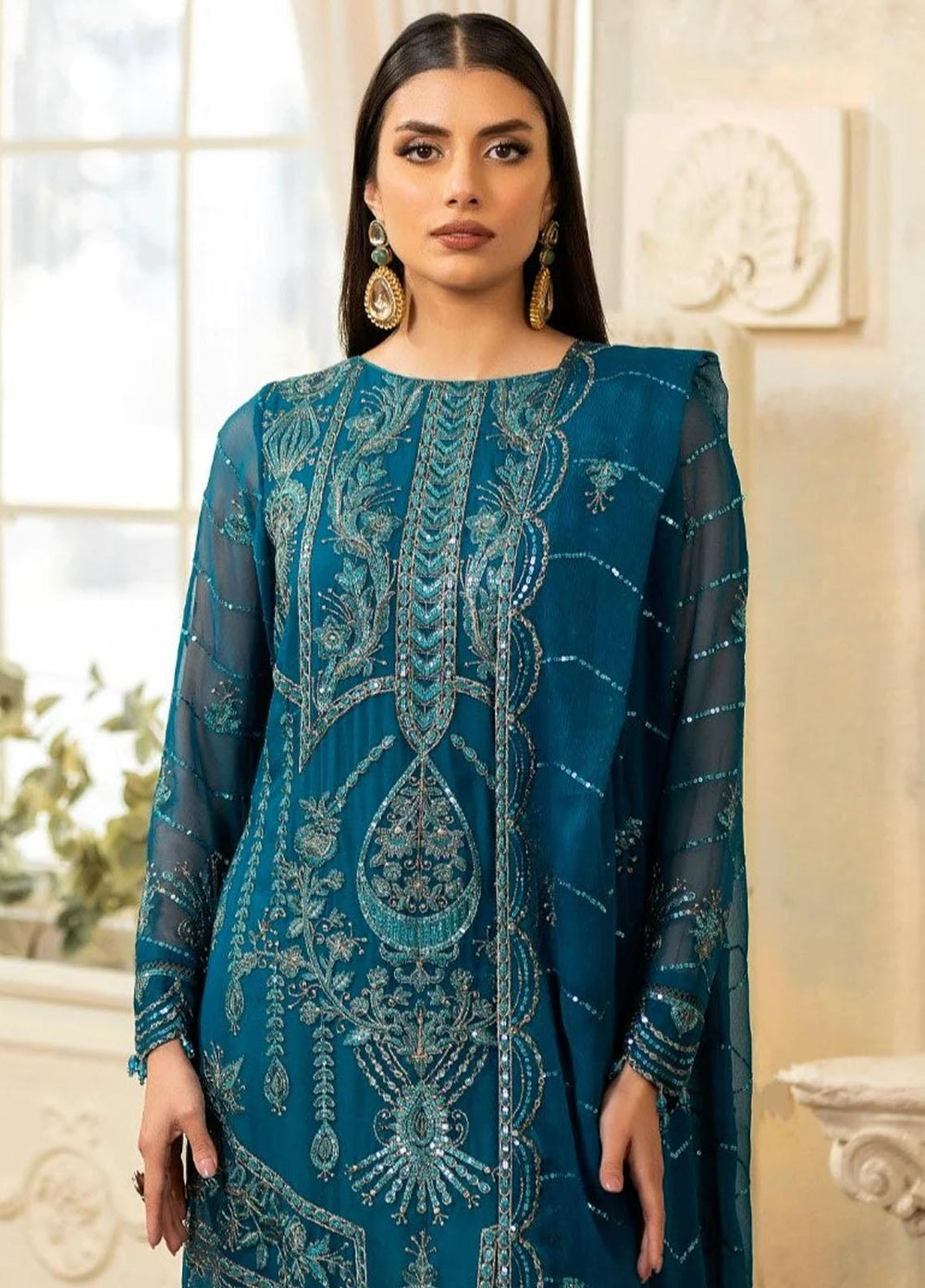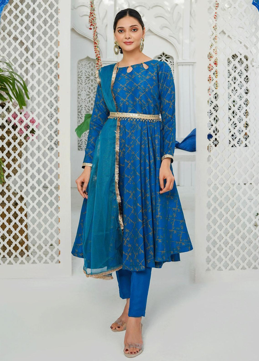 Modest Luxury Pret Raw Silk 3 Piece Suit Gulnaaz W165-Blue