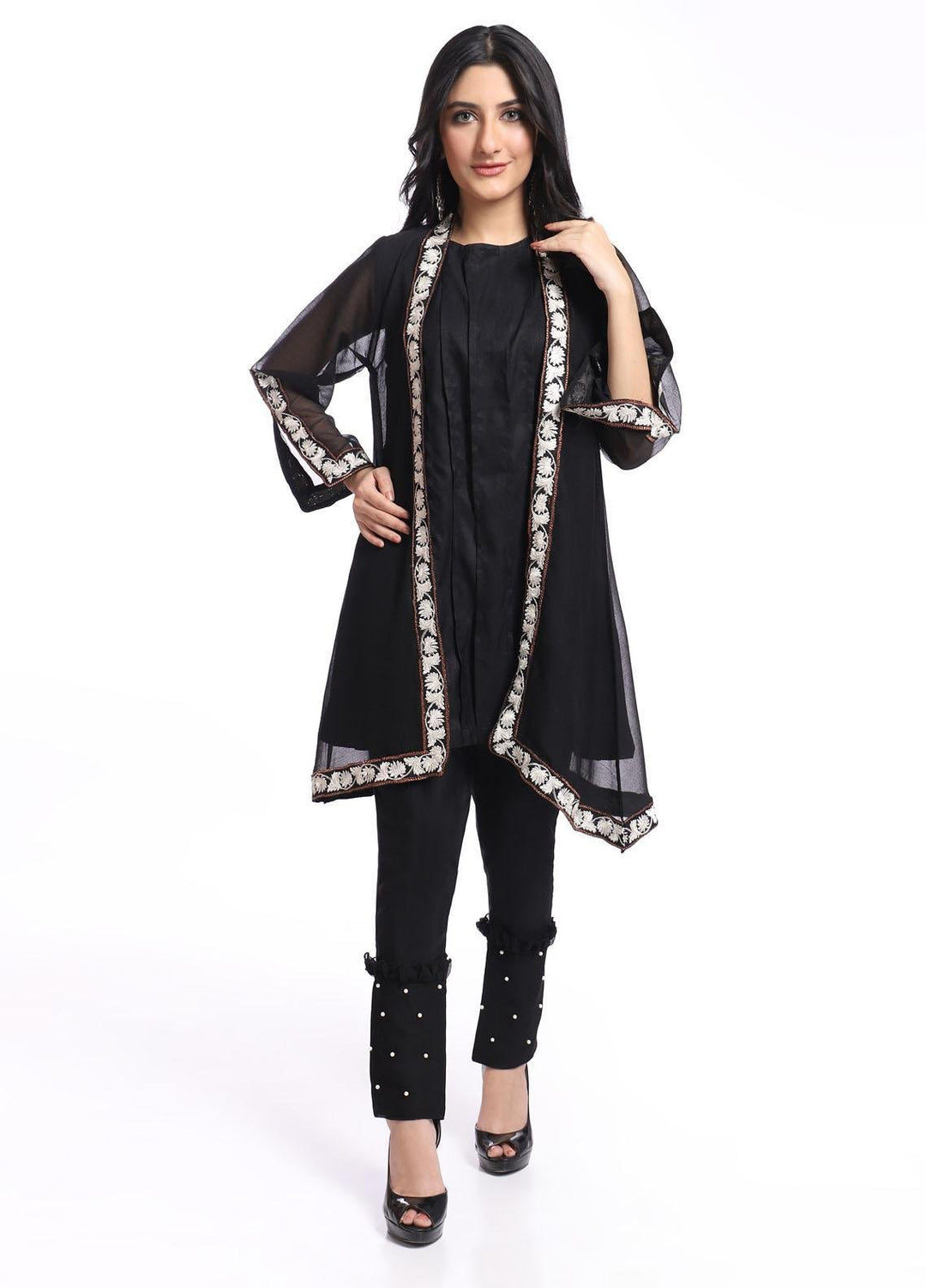 Modest Luxury Pret Organza 3 Piece Suit Zahenaseeb W197-Black