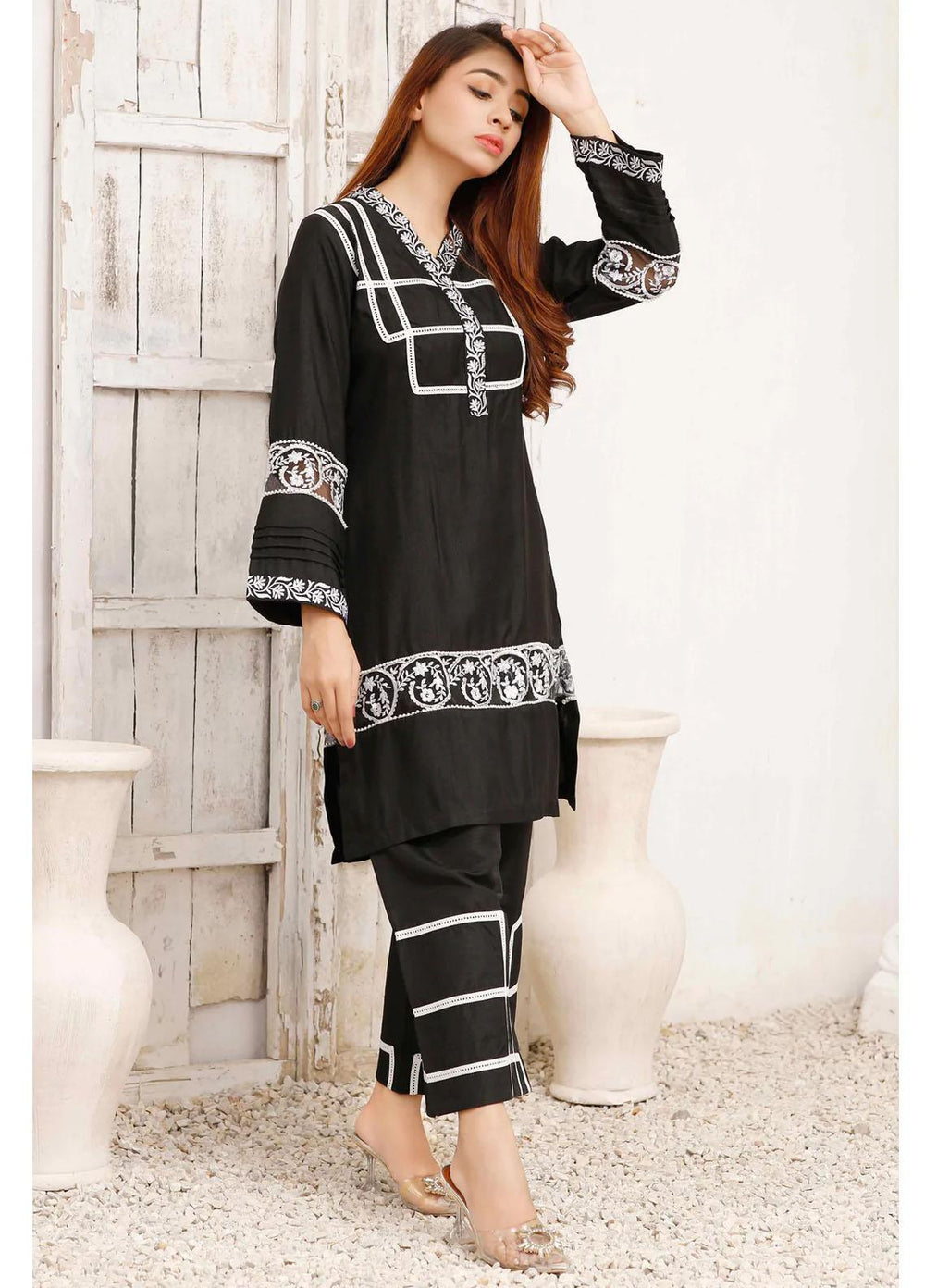 Modest Luxury Pret Raw Silk 3 Piece Suit Mehroze W200-Black