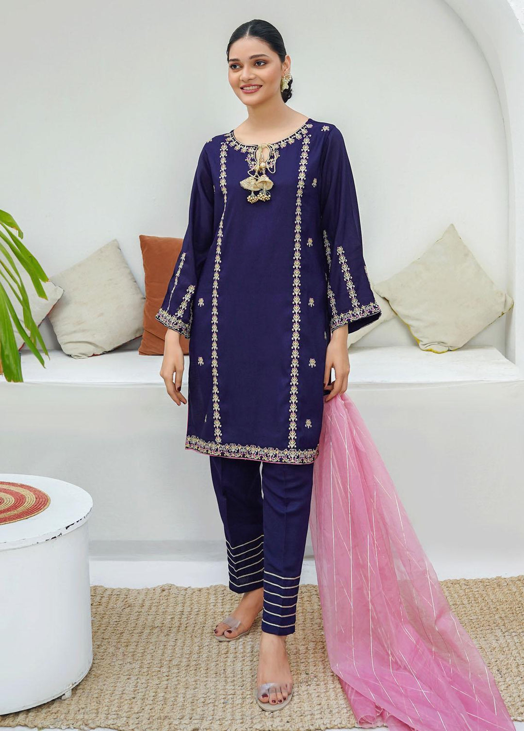 Modest Pret Embroidered Raw Silk 3 Piece Suit MD23RE Lila