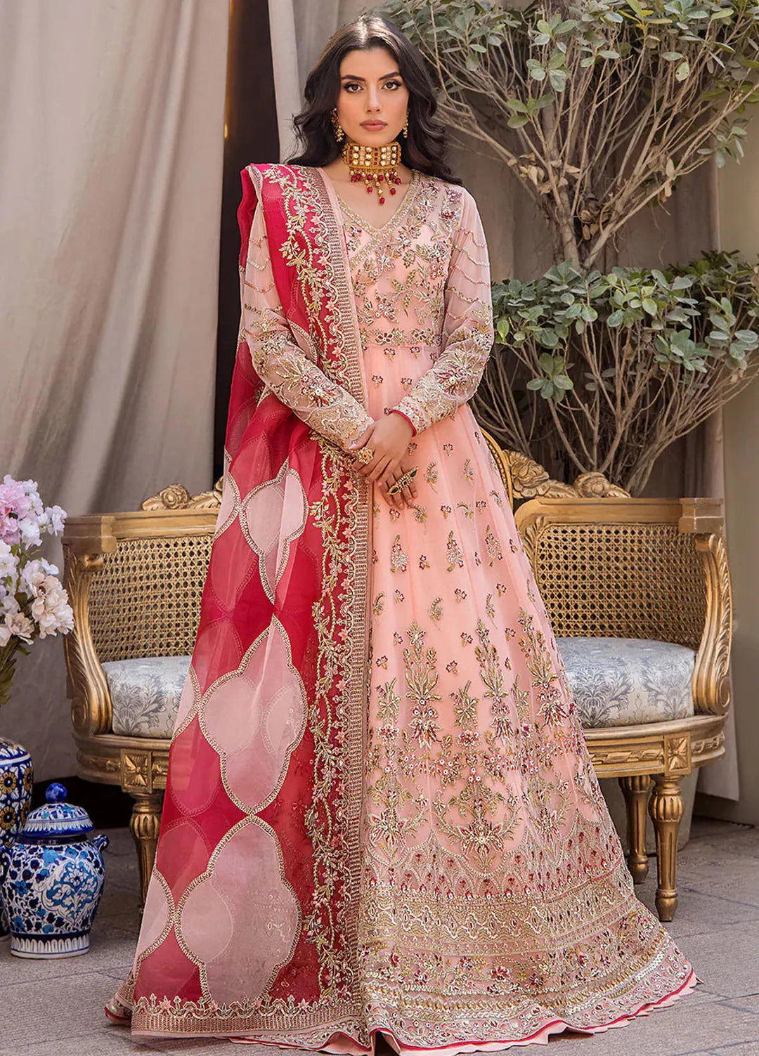 Mona Embroidery Pret Embroidered Chiffon 3 Piece Suit Divinedrape Angrakha-Peach