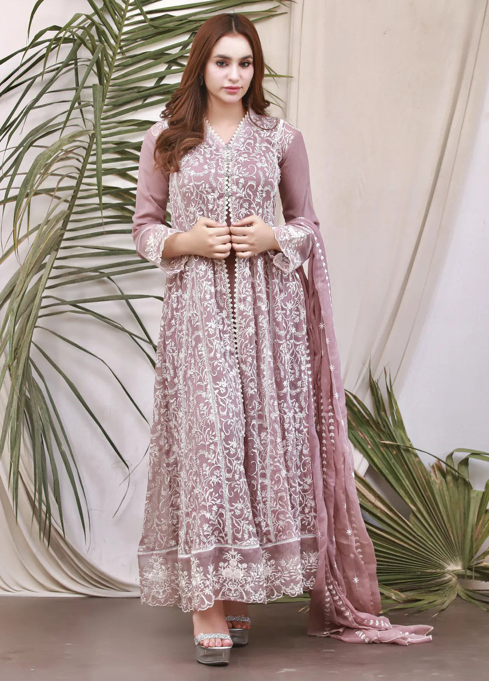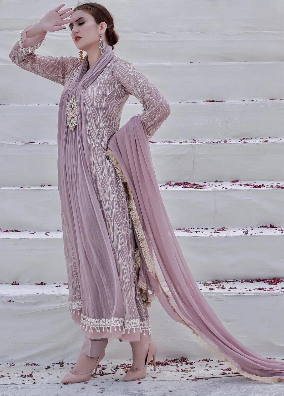 Mona Embroidery Pret Embroidered Chiffon 3 Piece Suit Divinedrape Angrakha-Lilac