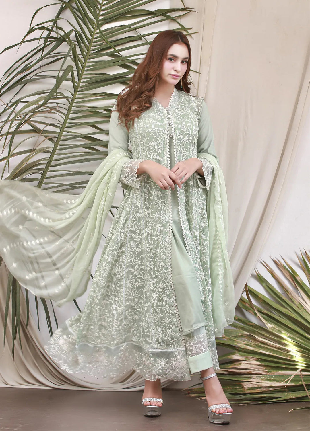 Mona Embroidery Pret Embroidered Chiffon 3 Piece Suit Divinedrape Angrakha-Mint-Green
