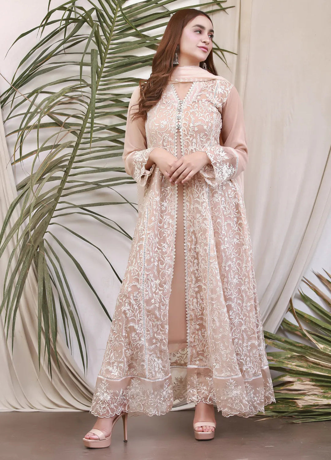 Mona Embroidery Pret Embroidered Chiffon 3 Piece Suit Divinedrape Angrakha-Light-Brown