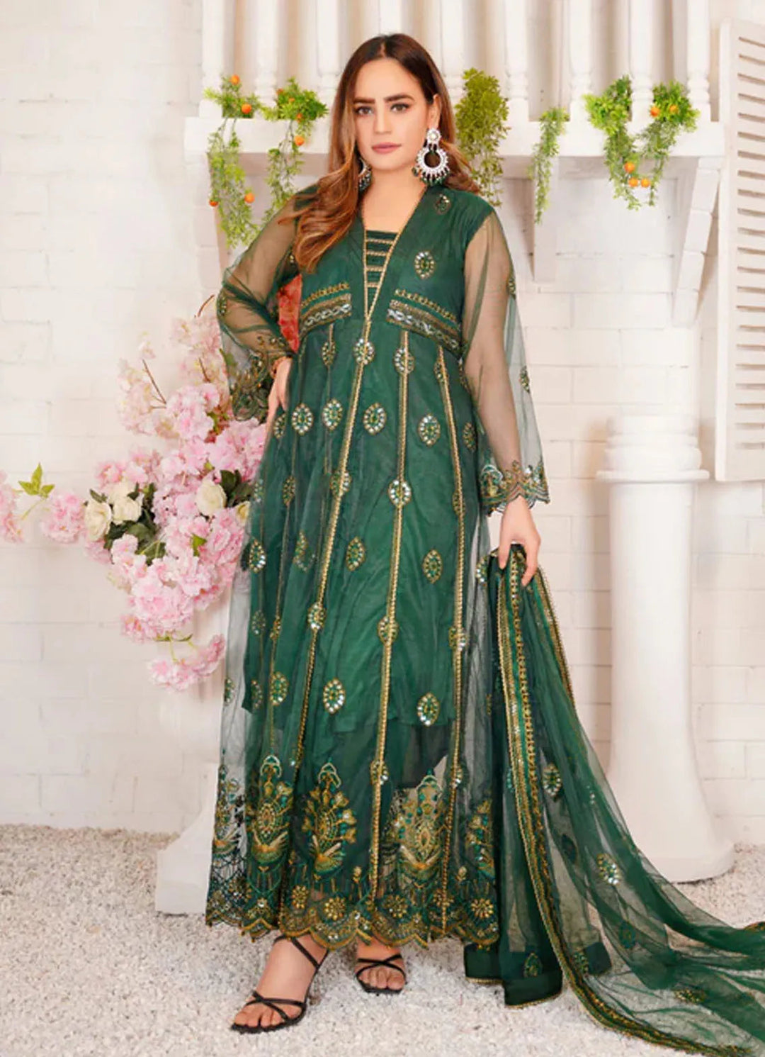 Shamooz Pret Formal Chiffon 3 Piece Suit SEM-0632 Bottle Green