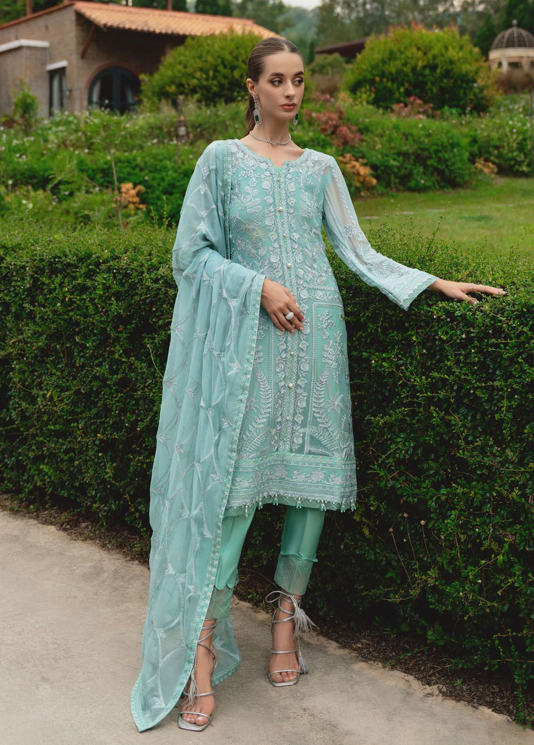 Sahane Pret Embroidered Chiffon 3 Piece Suit CT 12002-Azure Allure Skyblue