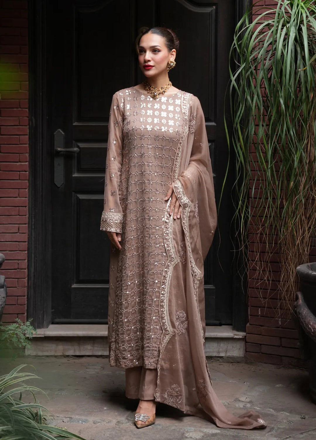 Sahane Pret Embroidered Chiffon 3 Piece Suit CT 12003-Nuance Brown