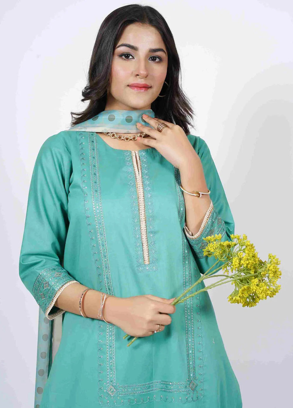 Sahane Pret Embroidered Chiffon 3 Piece Suit CT 12004-Jade Turquoise