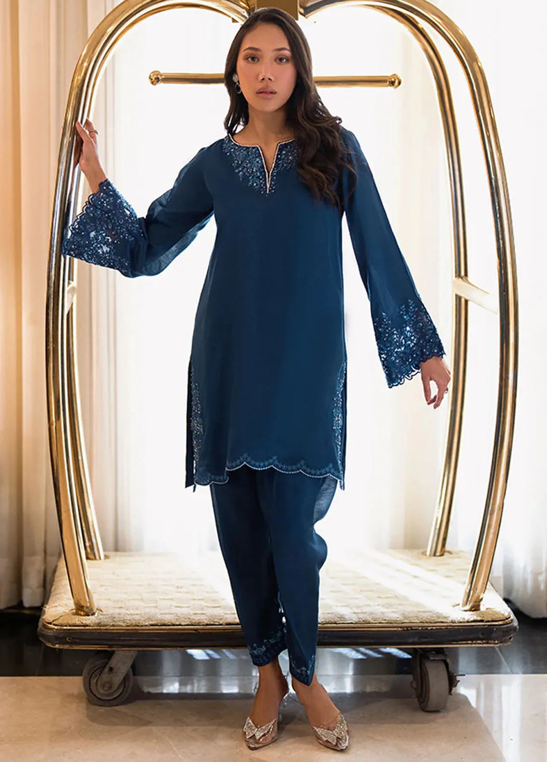 Azure Pret Embellished Raw Silk 2 Piece Suit Cobalt Glow