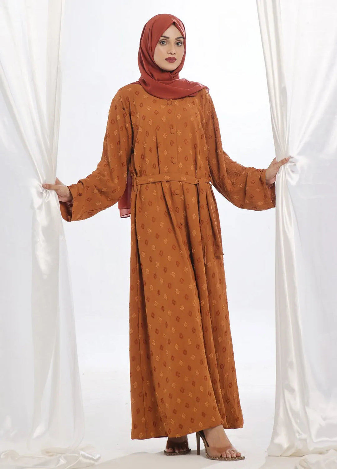 TGM Pret Chikankari Wool Peach Abaya Yasira
