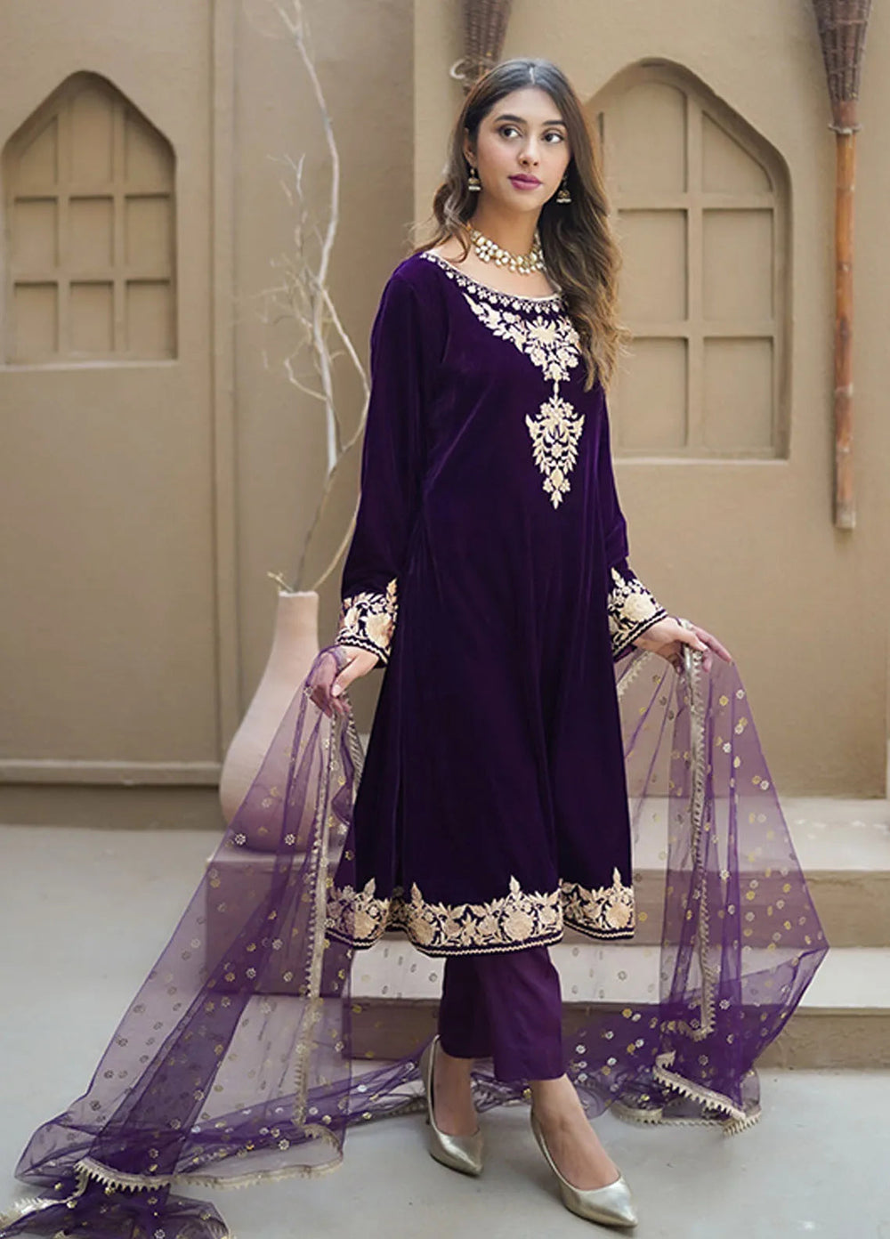 Tassawur Pret Embroidered Velvet 3 Piece Suit Jasmin