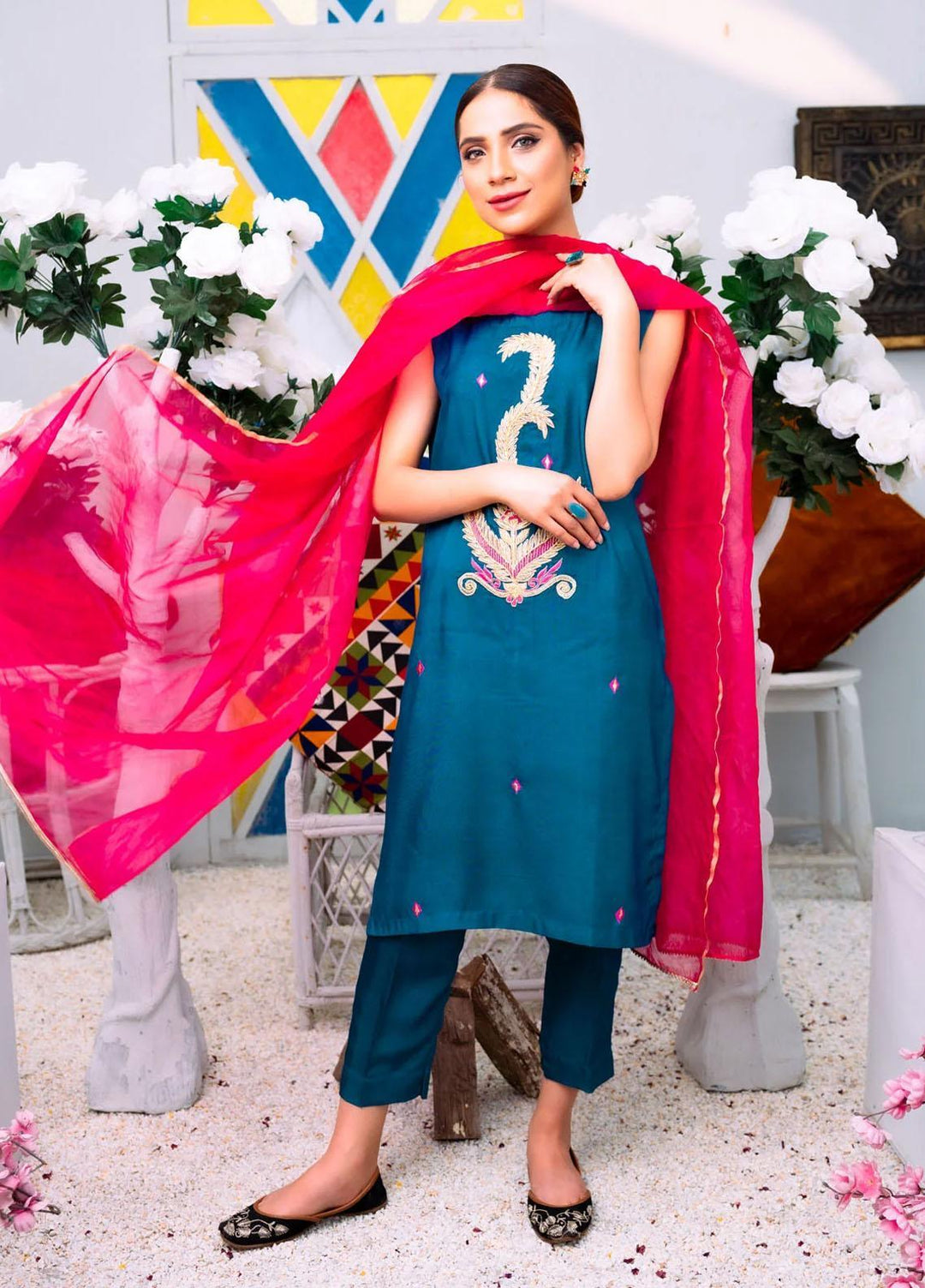 PSK Couture Pret Premium Karandi 2 Piece Suit THE FLAMINGO