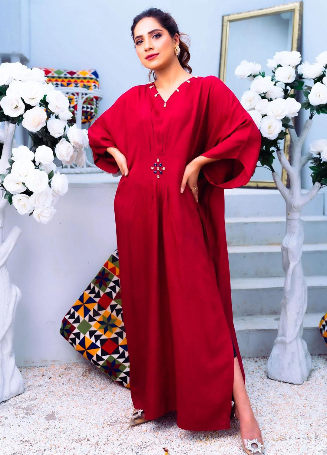 PSK Couture Pret Blended Silk Kaftan RED COCKTAIL