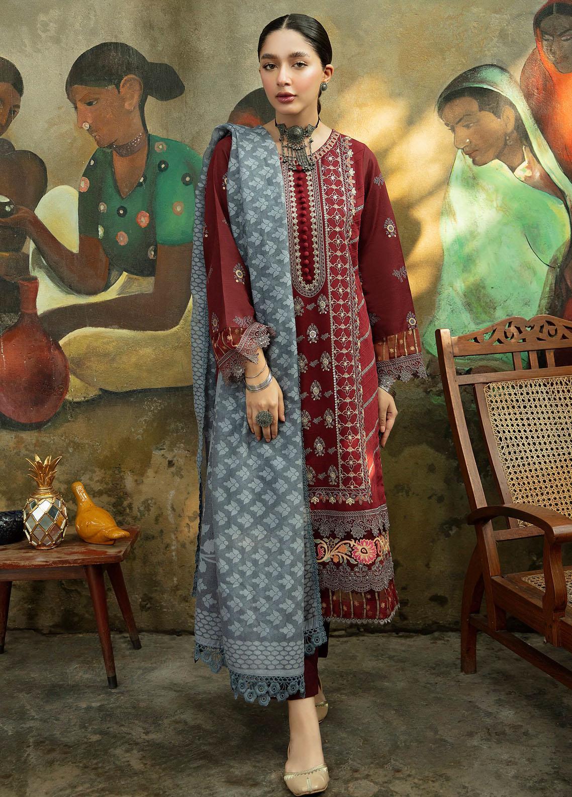 Qalamkar Embroidered Linen Suits Unstitched 3 Piece QLM21LN NW-02 - Winter Collection