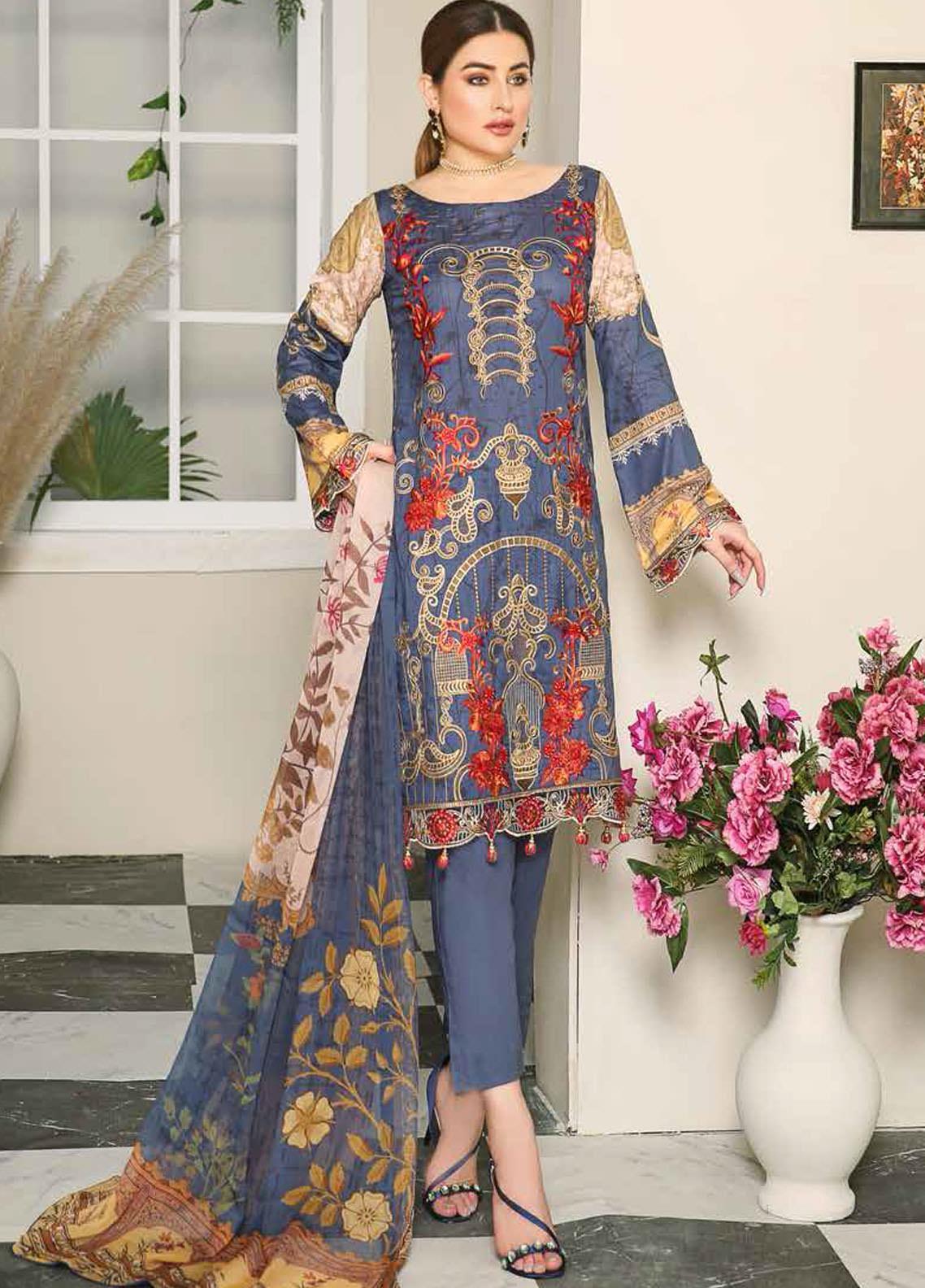 Dastoor by Ramsha Embroidered Lawn Suits Unstitched 3 Piece R21DT G-06 SERENE LOOKS - Summer Collection