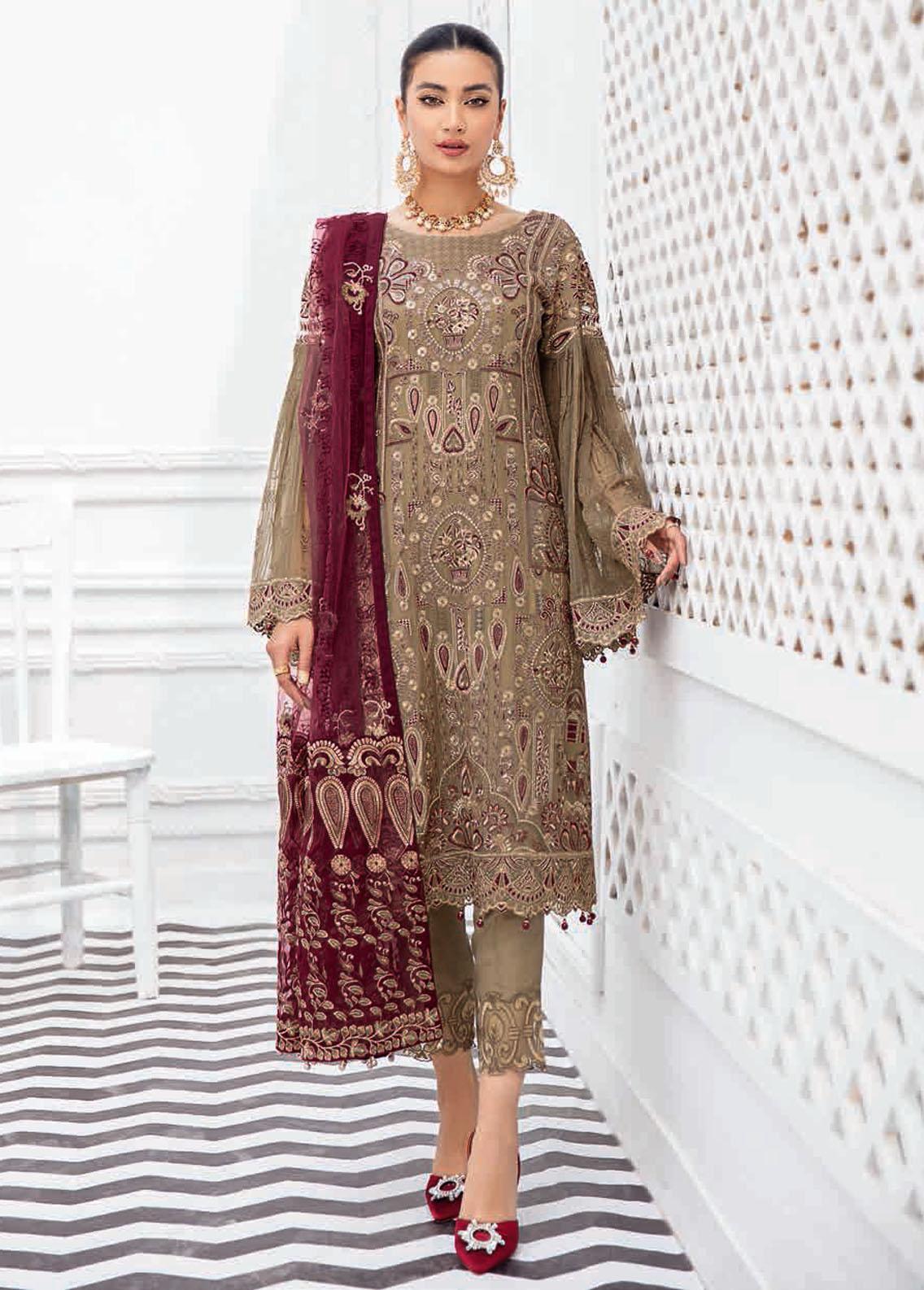 Rangoon by Ramsha Embroidered Chiffon Suits Unstitched 3 Piece RSH22-R8 D-801 - Luxury Collection