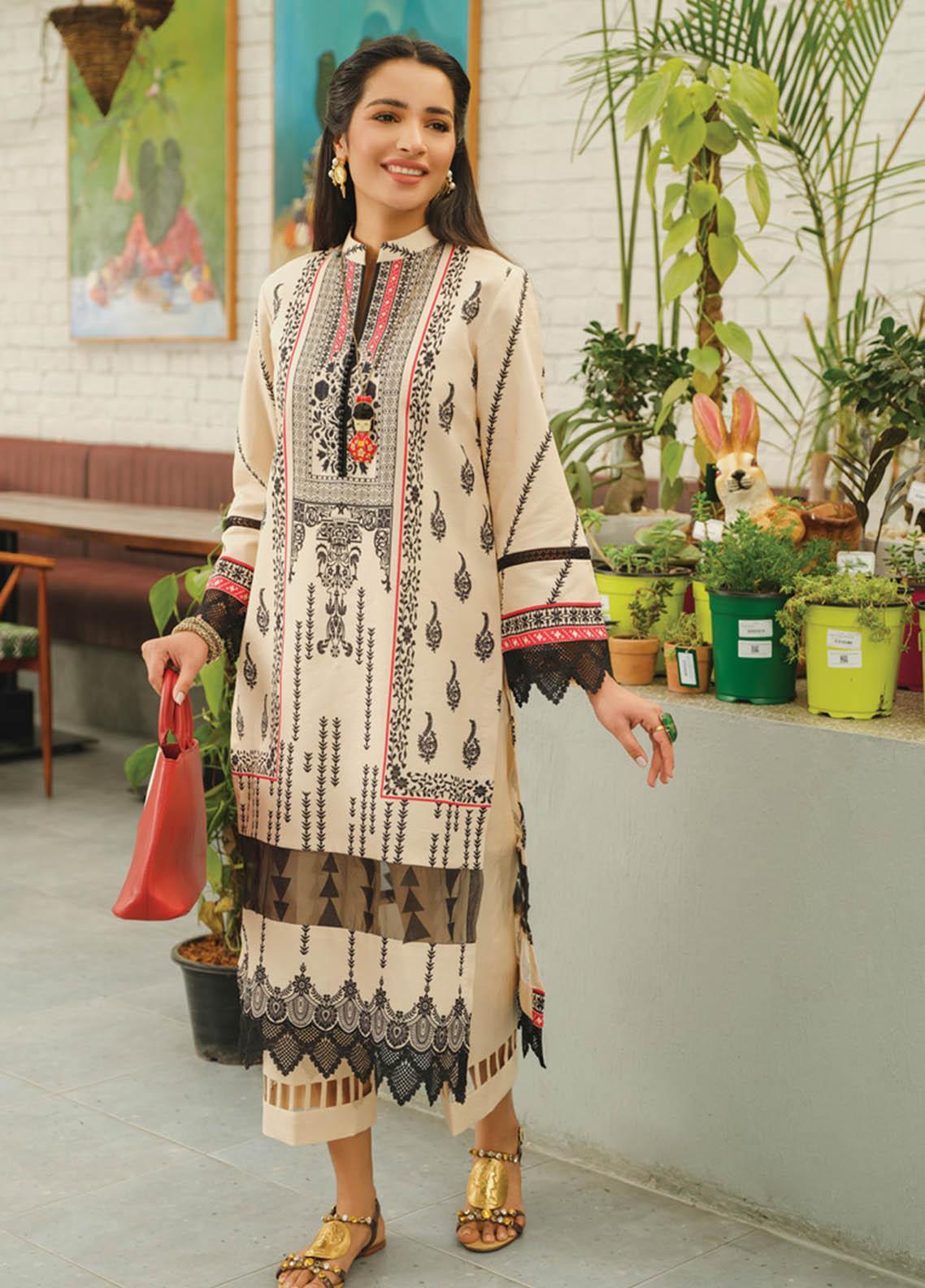 Rang Rasiya Printed Lawn  Unstitched Kurti RR23T 06 Ivory - Summer Collection