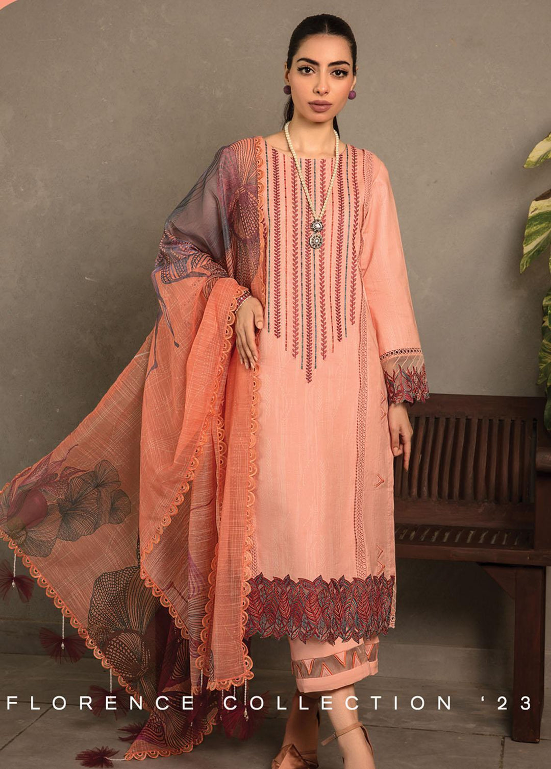 It has 3 piece unstitch suit that comes with varieties of designs, colors, and fabrics that give you an amazing look and will surely enhance your personality at any party or function. Rang Rasiya Linen collection has embroidered shirt with printed sleeves, dyed trouser, and chiffon dupatta.